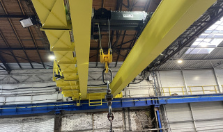 A bridge crane with a capacity of 20t and a span of 15m is used for handling castings, which are further processed by machining. The crane's electrical equipment was supplied by SAR, which supplied the crane to the end user. All crane speeds are controlled by frequency converters. A Stahl type SHF6050-32 4/1 L4 hoist is used as the lifting mechanism. . The lifting mechanism is equipped with multicontroller SMC22, which processes, registers and archives operating data, including displaying the remaining life of the mechanism. The end carriages are components manufactured by Stahl, type LT-40-4080US62078H0000-N. In the assignment, the operator already pointed to the considered high number of cycles, including the load rotation process, to which the crane will be subjected. Therefore, this bridge crane is designed for its individual requirements with increased stiffness of the bridges, larger wheel diameters, including their adjustment for an atypically designed track of the crane track, etc.