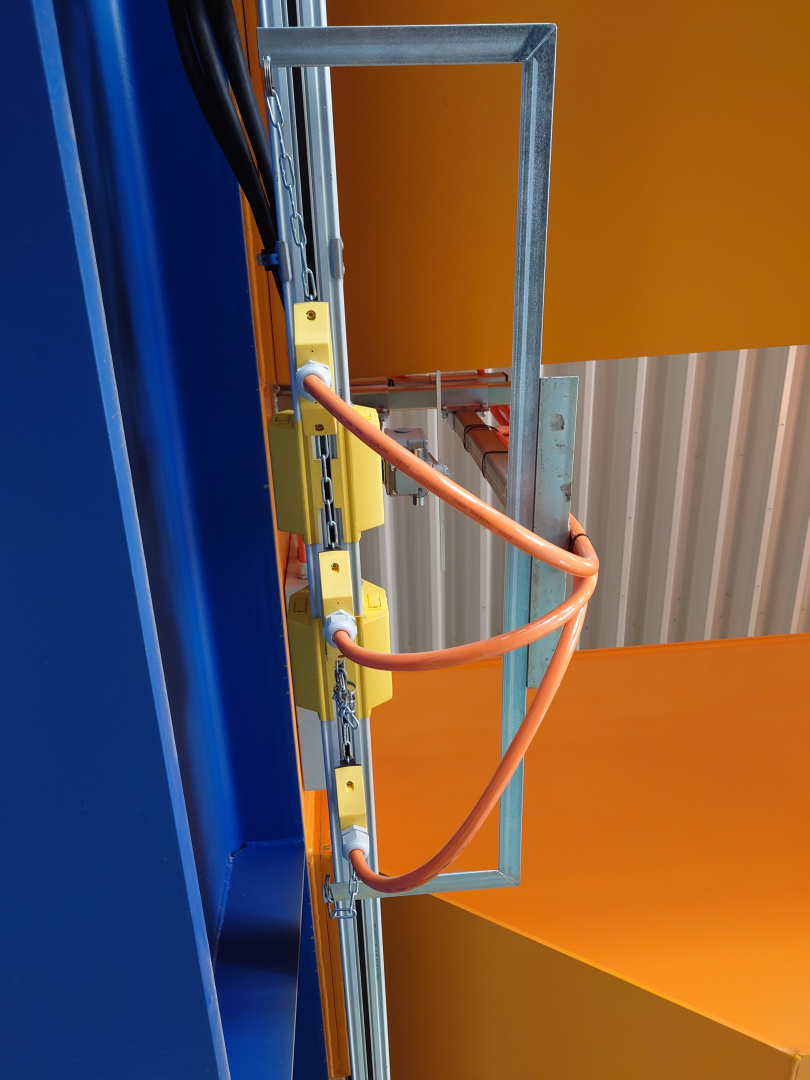 Napájecí trolej Fels Elite 200 slouží pro napájení 3ks mostových jeřábů na jeřábové dráze dlouhé 108m. Jedná se o 1ks jeřábu Giga 10t+10t a 2ks jeřábů Omis každý o nosnosti 16t. Jeřáby slouží pro manipulaci s betonovými díly.
