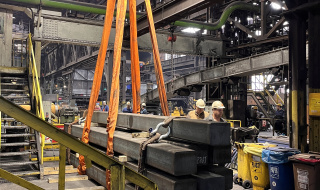 Delivery of stationary hoists for a 40t / 5t / 16m bridge crane that handles metallurgical semi-finished products in the rolling mill of ironworks. The operation of this crane is characterized by a heavily dusty environment with vibrations and local thermal stress in the form of radiant heat. A Stahl type ASF7100-20 4/1 L4 hoist was used for the main lift and the hoist used for the auxiliary lift is a Stahl type SHF5025-20 2/1 L3. Both lifting mechanisms are equipped with electrical components for an operating voltage of 500V. The lifting height is 18m and the lifting speed is regulated by changing the frequency. Both machines are equipped with a manual release of the operating lift brake, and the 40t main lift also has a holding brake installed on the rope drum.