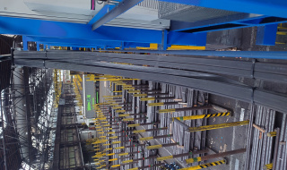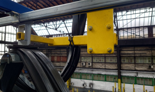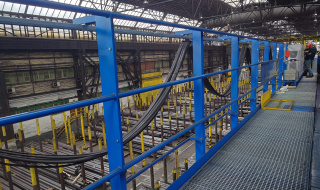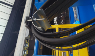 Kabelová vlečka C2 ( C-profil 40x40 mm ) slouží pro napájení kočky mostového jeřábu který zajišťuje manipulaci s hutními polotovary v železárnách. Délka kabelové vlečky je 21,5m a obsahuje 8ks plochých PVC kabelů.