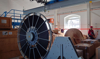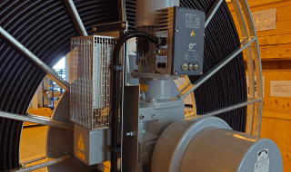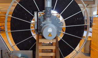Motorový navíjecí buben slouží pro napájení manipulátoru určeném pro manipulaci s prkny ve dřevařském průmyslu. Finský koncový uživatel vyžadoval nejenom vysoký stupeň provozní spolehlivosti ale kladl důraz na nadstandardní výkonové technické parametry celého zařízení. Délka pojezdové dráhy manipulátoru je 260m a navíjecí buben navíjí 130m kabelu 5x10mm2. Vzhledem k vysoké rychlosti pojezdu 160 m/min a vysokému zrychlení 0,3 m/s2 je pohon bubnu řízen frekvenčním měničem a vybaven zařízením kontrolujícím maximální a minimální tah v kabelu. Navíjecí buben typ G2-F90-T10241-63P05-IP55-C3-UT2040-KL-END4 pracuje v nejnižších teplotách okolního prostředí dosahujících až -30°C.